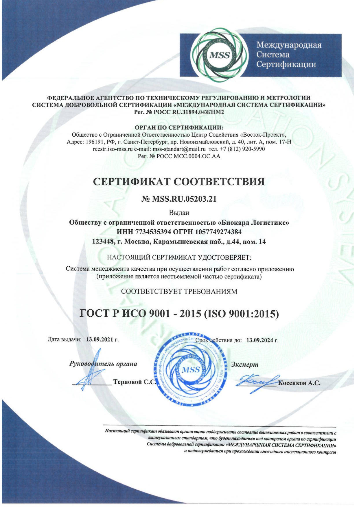BIOCARD Company provides a full range of logistics services in healthcare. Carrying out such a wide range of activities we have all the necessary licenses.